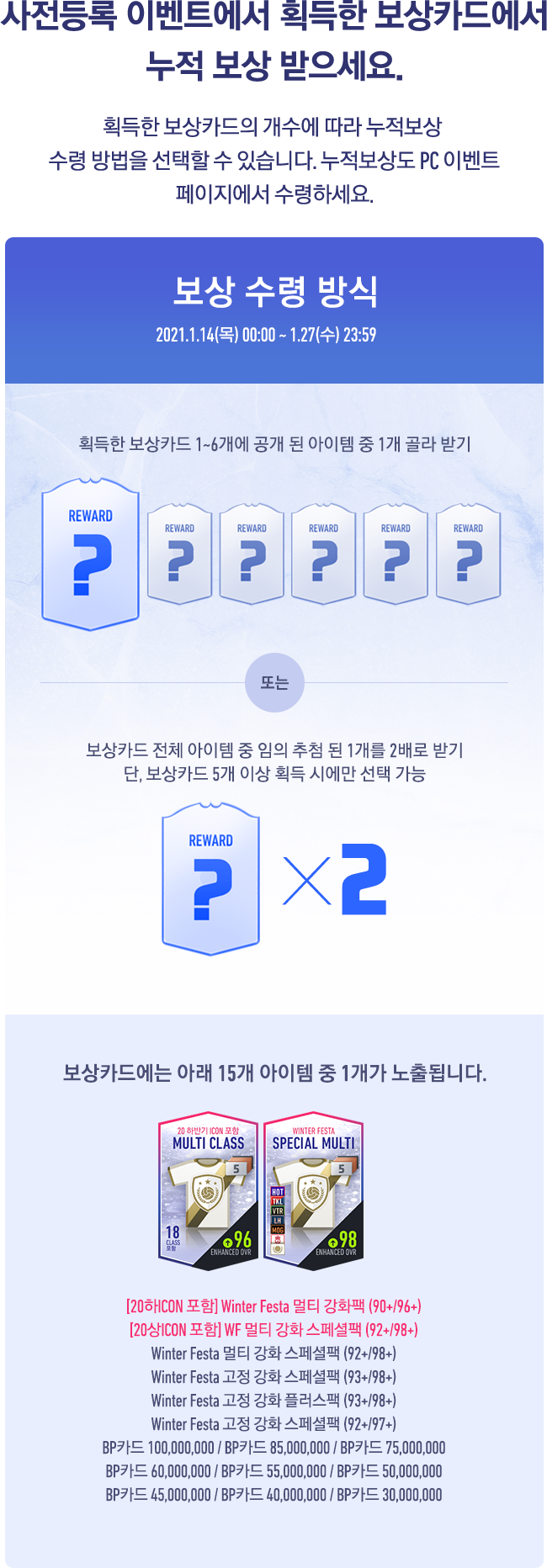 - 획득한 보상카드의 개수에 따라 보상방법을 선택할 수 있으나, 한번 선택한 수령방법은 변경할 수 없습니다.