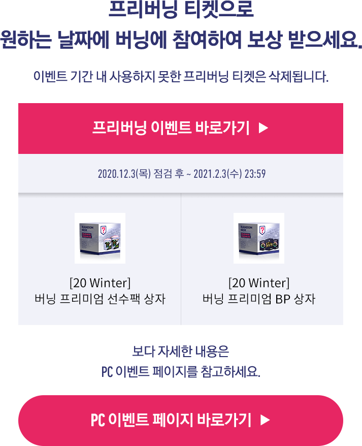 - 프리버닝 이벤트에서 2020.2.3 까지 매일 21:30 이내에만 사용 할 수 있습니다.