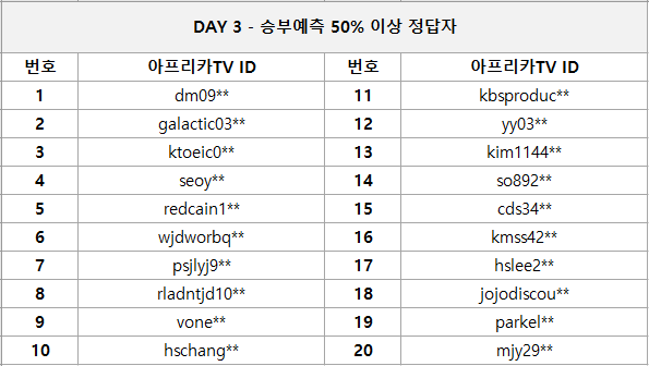 방송 중 진행된 실시간 투표에 참여해 주신 유저 분들을 대상으로 추첨하여