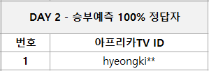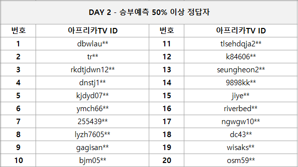 2) 승부예측 50% 이상 정답자 20명 / 5만 넥슨 캐시