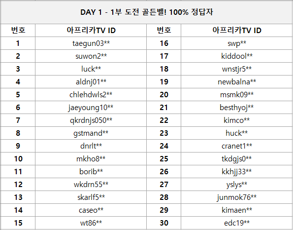 1) 1부 도전 골든벨! 100% 정답자 30명 / 10만 넥슨 캐시