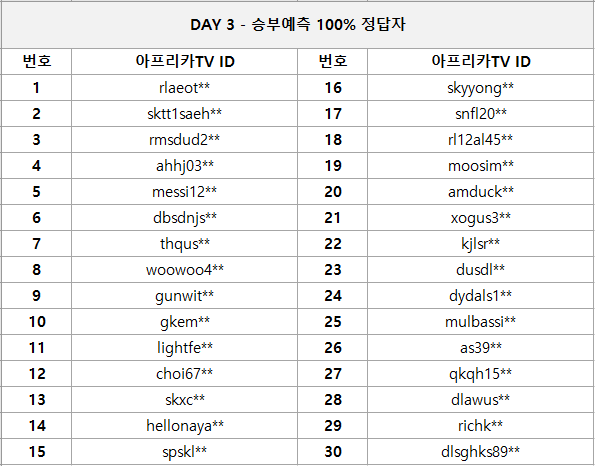 1) 승부예측 100% 정답자 30명 / 10만 넥슨 캐시