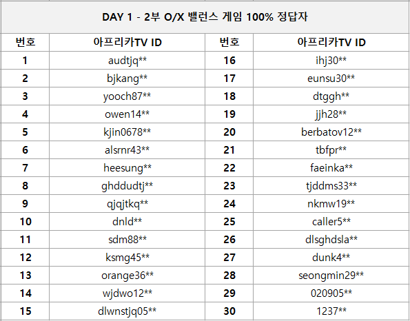 4) 2부 O/X 밸런스 게임 100% 정답자 30명 / 10만 넥슨 캐시